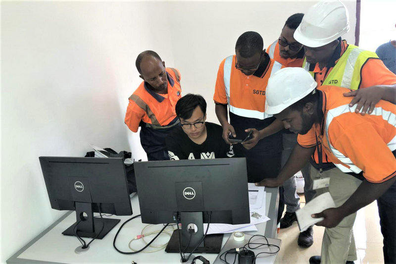 圖三、中鐵建大橋局電氣化公司吉布提DCT鐵路三電項目人員培訓(xùn)當(dāng)?shù)貥I(yè)主進(jìn)行箱變遠(yuǎn)動控制軟件使用