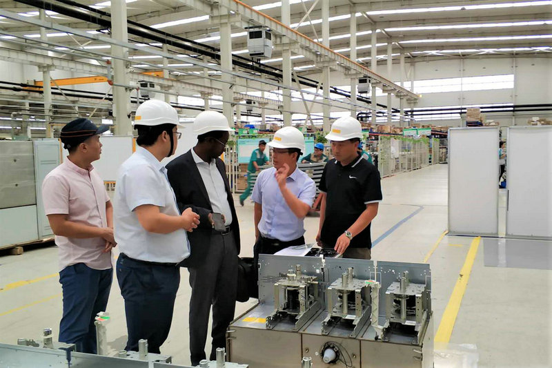 圖一、中鐵建大橋局電氣化公司吉布提DCT鐵路三電項目人員配合業(yè)主在箱變廠進(jìn)行廠驗工作