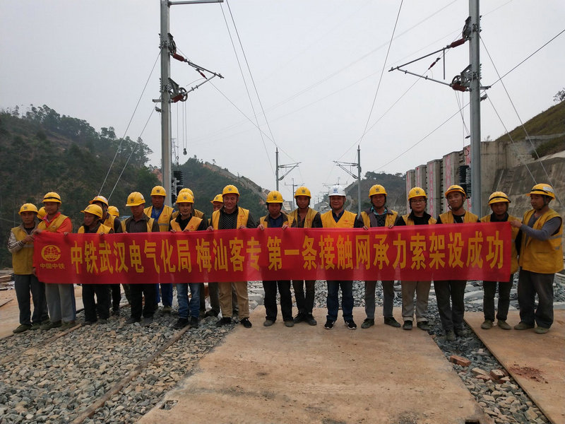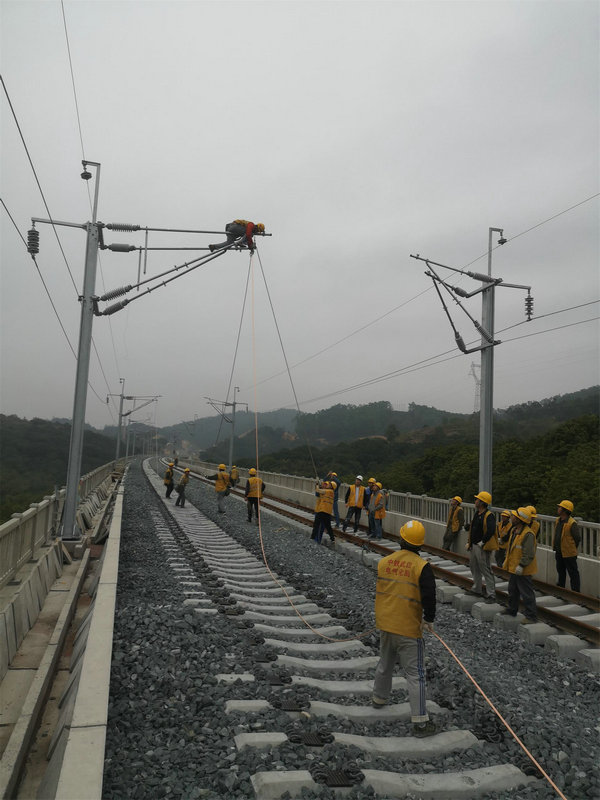 1月9日,由中鐵武漢電氣化局廣州分公司梅汕項(xiàng)目部施工的接觸網(wǎng)專業(yè)豐順東至揭陽(yáng)北區(qū)間第一條承力索成功架設(shè),標(biāo)志著豐順東至揭陽(yáng)北區(qū)間接觸網(wǎng)工程全面進(jìn)入承力索架設(shè)階段。