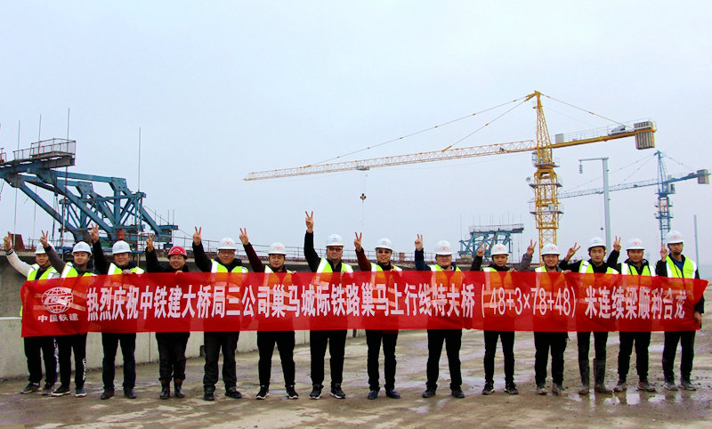 1月13日下午5點,中國鐵建大橋工程局集團三公司商合杭項目施工現(xiàn)場傳來喜訊,巢馬城際鐵路上行線特大橋連續(xù)梁順利合龍,較計劃工期提前半個月。