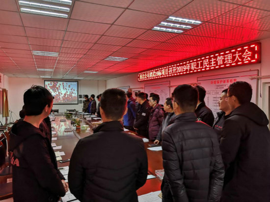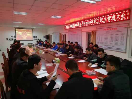 3月6日晚,隨著莊嚴的國歌聲響起,中國鐵建大橋局西北公司渭武19標項目2019年職工民主管理大會正式拉開序幕,項目領導班子、部門負責人、正式職工及特約受邀優(yōu)秀臨時工代表共39人參加會議。