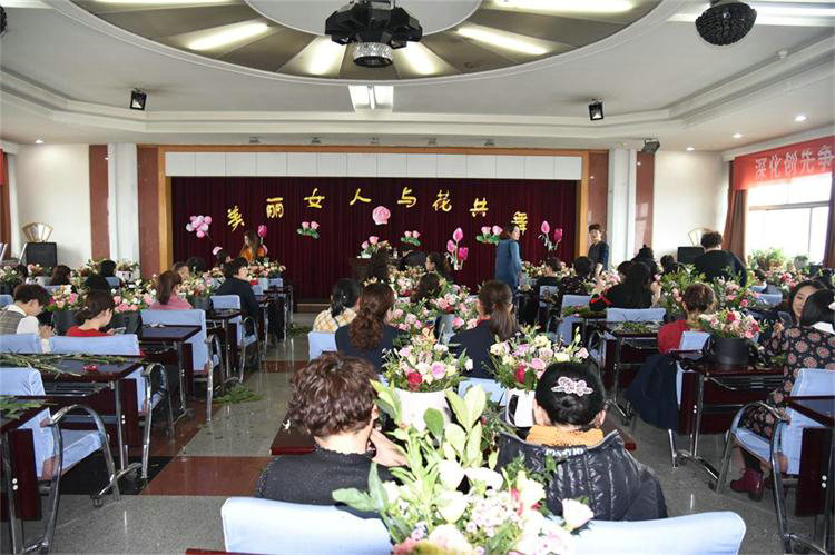 活動(dòng)當(dāng)天,近百位女職工參加,滿滿當(dāng)當(dāng)來到了活動(dòng)大廳。首先,公司領(lǐng)導(dǎo)致辭為女職工們送上了誠摯的節(jié)日的祝福。接著,公司邀請的花藝培訓(xùn)老師對(duì)花藝?yán)碚撝R(shí)進(jìn)行了簡單的介紹,講解了插花的藝術(shù)性及家居插花的基本技巧,指導(dǎo)大家如何選材和如何制作插花,并為女職工們演示了插花的制作過程。聽完講解后,“女神”們的插花創(chuàng)作便拉開了帷幕。修剪、綁枝、搭配、擺放……大家完全沉醉在自我創(chuàng)作、自我欣賞之中。經(jīng)過一個(gè)多小時(shí)的時(shí)間,零散的枝條在大家的巧手下變成了一盆盆具有詩情畫意、格調(diào)高雅的插花作品,看著通過自己的努力制作成功的插花作品,大家的臉上都洋溢著喜悅的笑容。