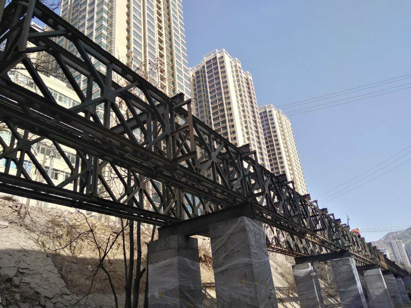 該便橋架設(shè)完成,實(shí)現(xiàn)了管線遷改階段性目標(biāo),為蘭州S136號(hào)路及地下綜合管廊工程的穩(wěn)步推進(jìn)提供了助力。新設(shè)鐵路南側(cè)鋼便橋?yàn)?-12米鋼桁架連續(xù)梁,橋長(zhǎng)106.6米的施工目前正在與民房拆遷同步進(jìn)行。