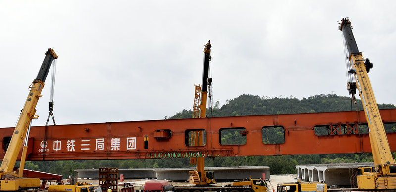 本報(bào)贛州訊(通訊員 譚振龍 王植 張鵬舉)3月28日,在中鐵三局線橋公司贛深客專鋪軌基地的上空響起喜慶的鞭炮聲,在項(xiàng)目人員共同努力下,經(jīng)過(guò)3臺(tái)大噸位吊車歷時(shí)3個(gè)小時(shí)的吊裝,SLJ900運(yùn)架一體機(jī)主梁精準(zhǔn)落位于后車架橫梁上,標(biāo)志著中鐵三局線橋公司贛深客專橋機(jī)組裝工作邁出關(guān)鍵性一步。