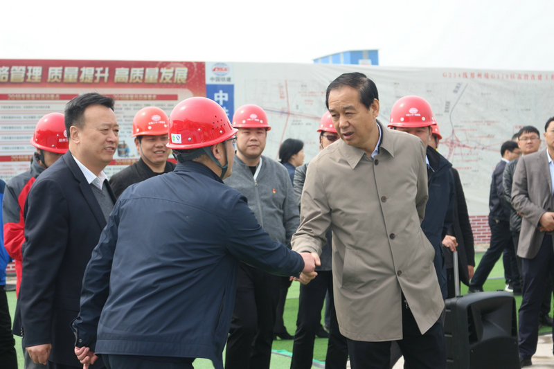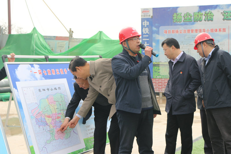 本網(wǎng)河南滎陽3月31日訊(通訊員 劉曉)3月29日上午,滎陽市市委書記宋書杰、人大主任張淑霞、政協(xié)副主席范勝利一行在市交通運(yùn)輸局黨組書記、局長(zhǎng)杜文杰等領(lǐng)導(dǎo)的陪同下,前往滎陽中鐵二十一局三公司G234項(xiàng)目部工地視察。陪同視察的還有鄭州交通建設(shè)投資有限公司總經(jīng)理韓樹國(guó),鐵建中原公司黨委副書記、總經(jīng)理馬威、監(jiān)理單位以及G234公路改建項(xiàng)目部黨工委書記李凱、常務(wù)副經(jīng)理郭東峰等。另外,鄭州G310兄弟項(xiàng)目技術(shù)人員也到現(xiàn)場(chǎng)參觀學(xué)習(xí)。 上午9時(shí)30分,四輛大巴車緩緩駛?cè)肴f山隧道出口,30多名來自滎陽市委市政府及人大、政協(xié)領(lǐng)導(dǎo)齊聚在項(xiàng)目標(biāo)準(zhǔn)化建設(shè)展示區(qū),參建員工熱烈鼓掌歡迎各位領(lǐng)導(dǎo)檢查工作,宋書記等領(lǐng)導(dǎo)與大家親切握手。市領(lǐng)導(dǎo)詳細(xì)了解了施工區(qū)揚(yáng)塵治理防塵設(shè)施標(biāo)準(zhǔn)配備、安全質(zhì)量管理制度執(zhí)行落實(shí)力度和拌合站、鋼構(gòu)件加工場(chǎng)等區(qū)域建設(shè)標(biāo)準(zhǔn)以及施工人員安全、防塵作業(yè)等情況;接著,市交通局長(zhǎng)杜文杰為大家講解了滎陽市“一環(huán)七放射五提升”的交通發(fā)展思路。宋書記聽到關(guān)鍵處,走到展板前,指著滎陽市公路圖,就國(guó)道234項(xiàng)目線路規(guī)劃的重要性和戰(zhàn)略性與在場(chǎng)領(lǐng)導(dǎo)進(jìn)行了進(jìn)一步交流、詢問了項(xiàng)目施工進(jìn)度,并對(duì)項(xiàng)目標(biāo)準(zhǔn)化建設(shè)給予了高度評(píng)價(jià),同時(shí),要求項(xiàng)目按照標(biāo)準(zhǔn)不遺余力的抓好揚(yáng)塵污染治理工作,攻克萬山、守住青山,建“惠民工程、利民工程”。