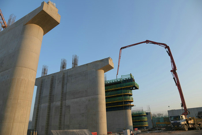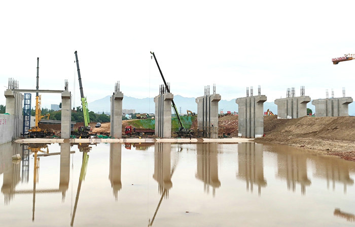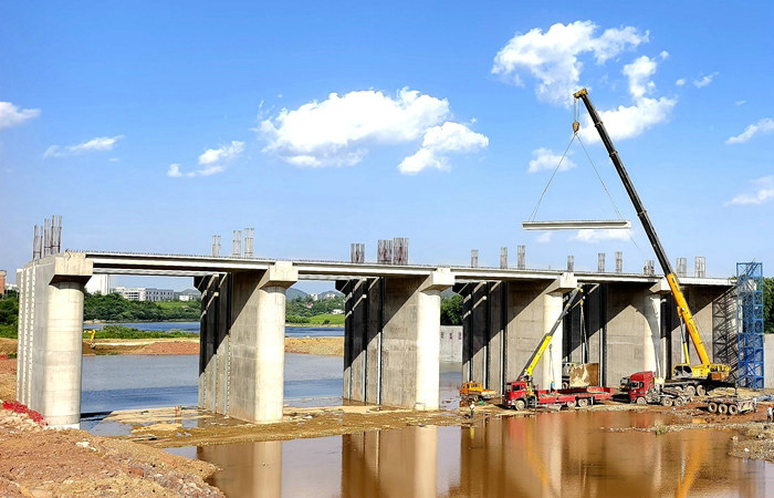 該公司管理團隊采用泥沙石、土工布、10000多立方塊石和1631根4.9——9.25米、直徑1.2米的旋噴樁,以及鋼管等材料建成1座499.85米的超大圍堰,擋住了雨季洪水的侵襲,為導流墻和泄洪閘施工“保駕護航”。經(jīng)過全員艱苦奮戰(zhàn),克服重重困難,在圍堰內(nèi)先后完成一座168米長的導流墻和8個泄洪閘墩、上游鋪蓋、護坦、消力池、底板鉆孔注漿固定地下破碎巖體等工程。同時根據(jù)設計圖紙,制梁場不斷改進工藝,加快生產(chǎn)不同規(guī)格的空心板梁,為順利完成架梁任務作了有力鋪墊。
