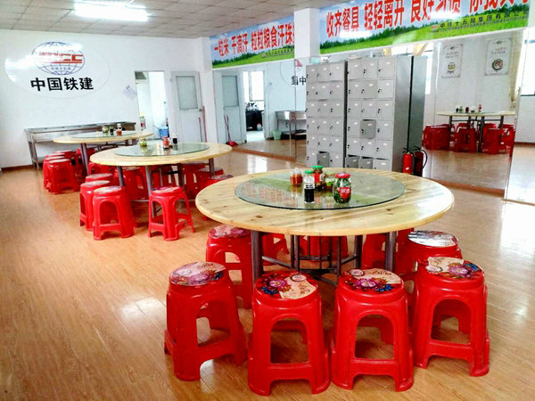 辦公室 由于該項(xiàng)目前期無預(yù)付款,職工之家和“三線建設(shè)”所需資金均為賒賬,起步難。為了滿足職(民)工的工作、生活需要,租賃修水汽車站4層樓,作為項(xiàng)目管理團(tuán)隊(duì)的辦公、住宿場所,將污跡斑斑的墻壁進(jìn)行了粉刷,更換了破舊房門,使整棟樓煥然一新,并給項(xiàng)目部40間辦公室、宿舍安裝了空調(diào),保證嚴(yán)冬和盛夏季節(jié),職工能舒舒服服睡覺,體力恢復(fù)快。項(xiàng)目部工會開展創(chuàng)建星級食堂活動,職工餐廳配置了不銹鋼洗碗池、碗柜、消毒柜、冰箱、蒸箱、炒菜工作臺、抽油煙機(jī)等一批炊具,購置6張餐桌、80把椅(凳)放置于大小餐廳,滿足了職工就餐和接待需要。項(xiàng)目部還訂做了40張價廉物美的木床,并給職工發(fā)放了被褥、床單枕頭、布衣柜、臉盆、毛巾、洗衣液等生活用品。在生活上,每人每天伙食費(fèi)標(biāo)準(zhǔn)為20元,三餐均為4菜(2葷2素)一湯自助餐,主食為:大米、饅頭、水餃、包子、油餅等,飯菜色香味俱全,還根據(jù)職工的意見和建議,不斷調(diào)整飯菜花樣,3天的菜肴不重樣。