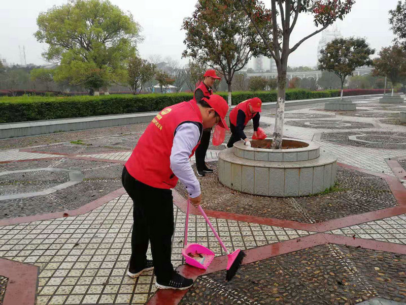 圖五、贛深鐵路遷改項目部志愿服務(wù)者在信豐縣中心陳毅廣場義務(wù)打掃衛(wèi)生