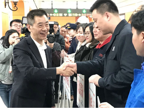 智大勇與中鐵一局一線參建員工親切握手