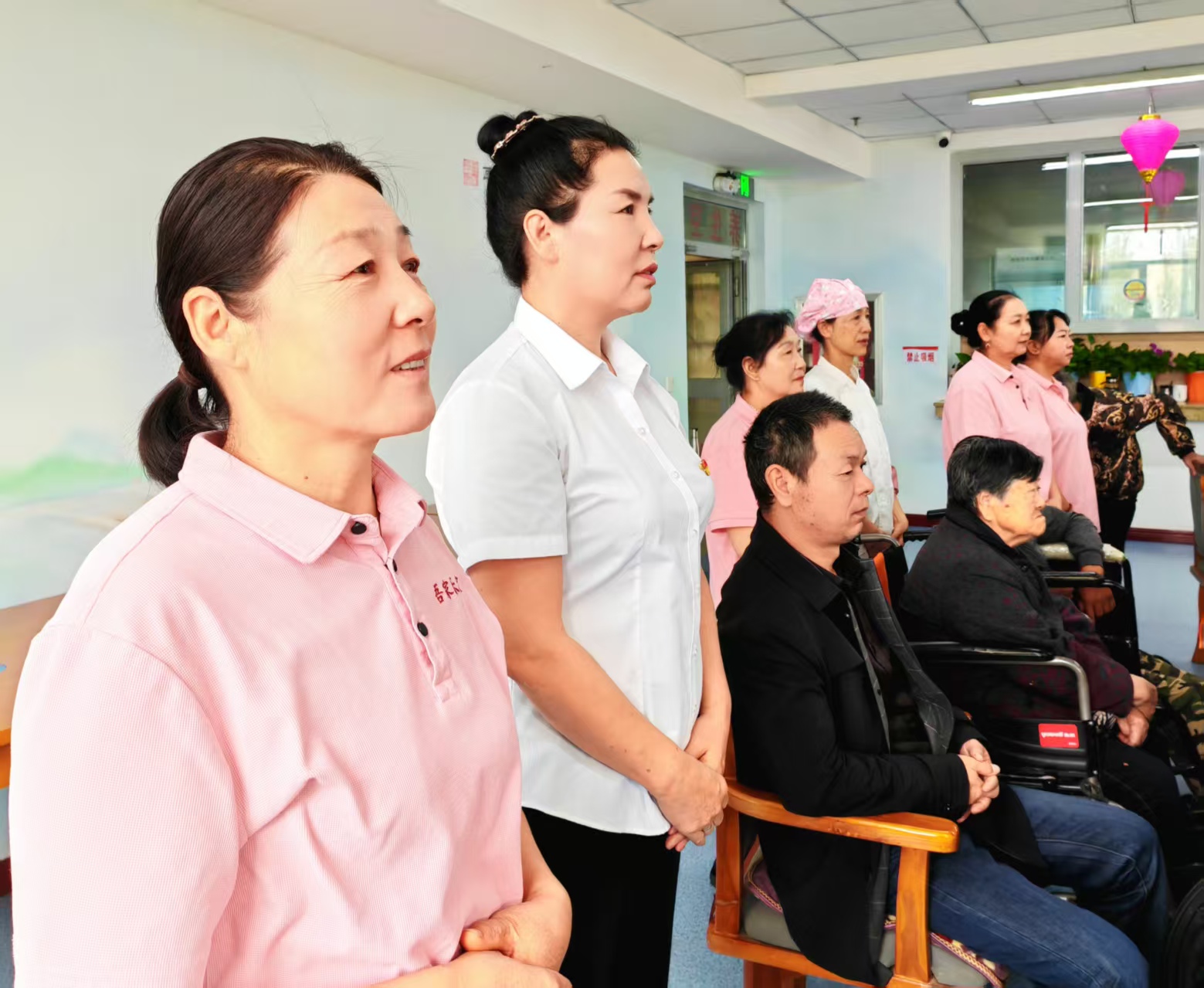 圖1為:奇臺(tái)110社區(qū)吾家樂寶養(yǎng)老院院長(zhǎng)史云智(左二)同在院長(zhǎng)者與員工們,認(rèn)真聆聽習(xí)近平總書記在紀(jì)念中國(guó)人民抗日戰(zhàn)爭(zhēng)暨世界反法西斯戰(zhàn)爭(zhēng)勝利80周年大會(huì)上的重要《講話》。