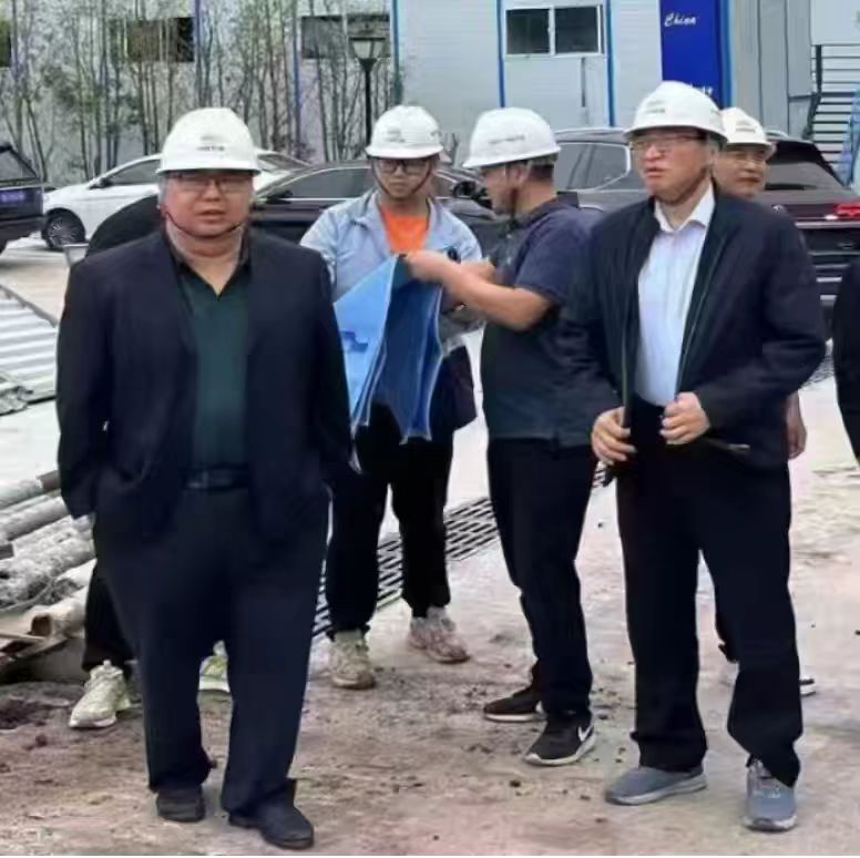 總承包部指揮長李兵(左1)、黨支部書記王向平(右1)帶頭深入現(xiàn)場(chǎng)及時(shí)解決施工難題