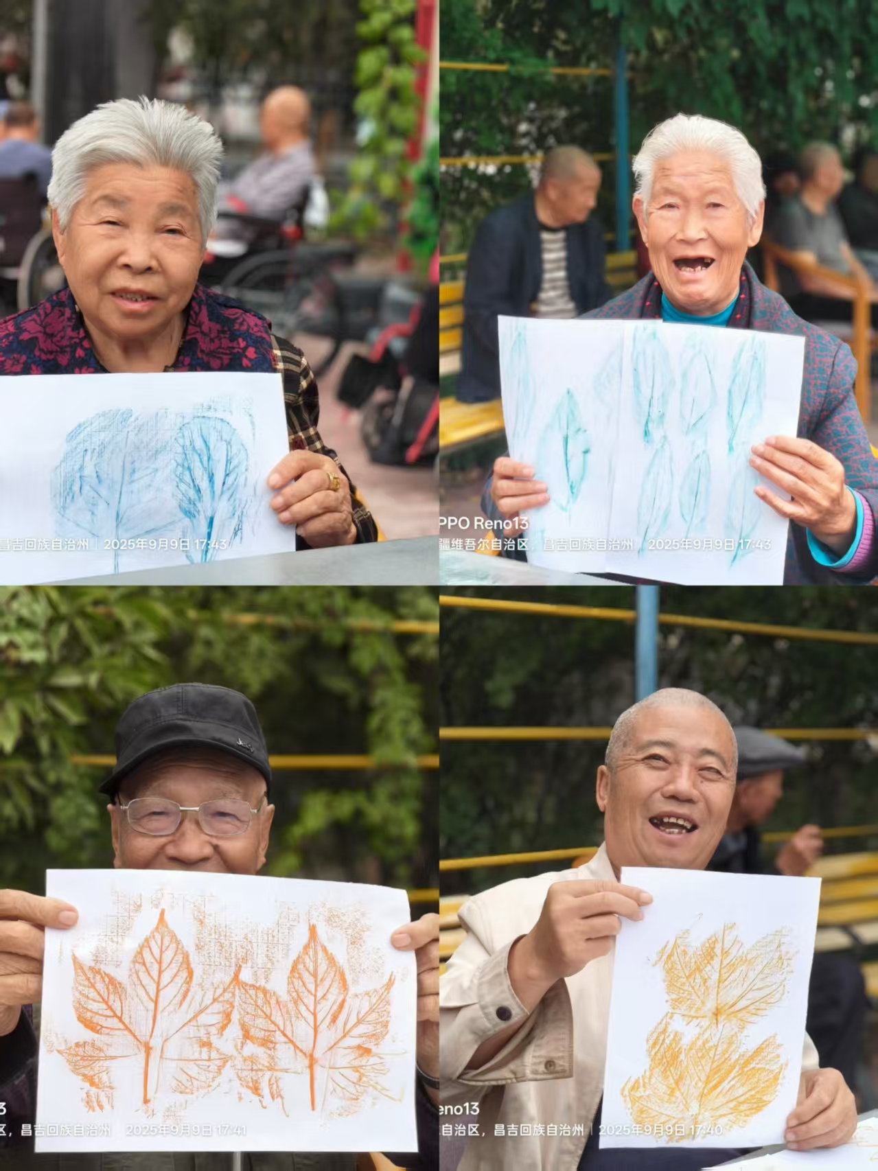 2025年 9月9日,紅旗農(nóng)場吾家樂寶養(yǎng)老院的小院里開展了一場別開生面的自然課——樹葉拓畫。活動現(xiàn)場,老人們在工作人員的陪伴下,開啟了一場奇妙的自然探索之旅。