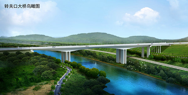 圖為重慶市綦江區(qū)環(huán)城大道建設(shè)轉(zhuǎn)關(guān)口大橋效果圖