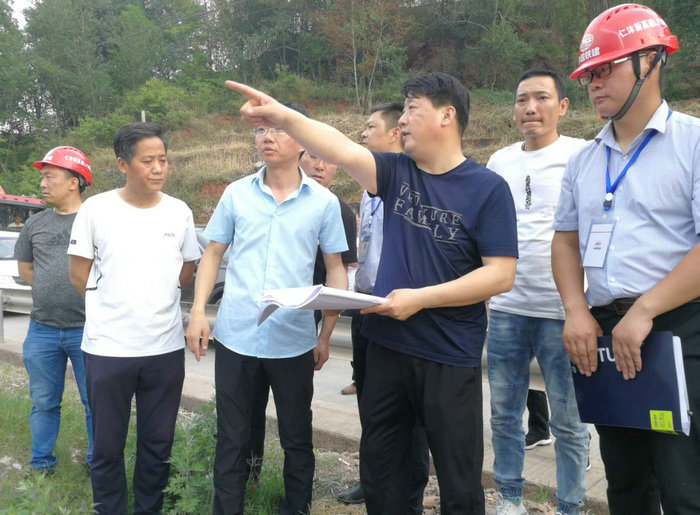 4月25日,莊乾理董事長(zhǎng)在對(duì)管區(qū)沿線進(jìn)行現(xiàn)場(chǎng)踏勘時(shí),與前來檢查工地的仁沐新高速公路有限公司董事長(zhǎng)劉勇、總經(jīng)理姜杰明、副總經(jīng)理向可明一行巧遇。在現(xiàn)場(chǎng),業(yè)主方聽取了項(xiàng)目負(fù)責(zé)人關(guān)于LJ16標(biāo)段情況介紹,以及項(xiàng)目部臨時(shí)設(shè)施場(chǎng)站規(guī)劃情況匯報(bào)。然后,莊乾理董事長(zhǎng)就項(xiàng)目總體規(guī)劃部署及施工思路與仁沐公司董事長(zhǎng)劉勇進(jìn)行了交流。