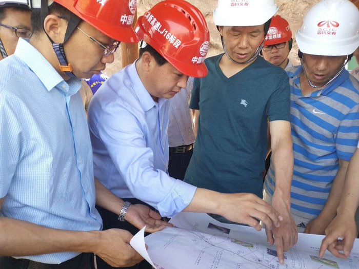 圖為莊董事長(zhǎng)(左二)與仁沐高速董事長(zhǎng)劉勇(右二)、項(xiàng)目負(fù)責(zé)人查看施工圖紙 劉勇董事長(zhǎng)在聽取項(xiàng)目負(fù)責(zé)人匯報(bào)及與莊董事長(zhǎng)交流后,在肯定LJ16標(biāo)段前期準(zhǔn)備工作時(shí),提出三點(diǎn)要求:一是項(xiàng)目規(guī)劃一定要合理適用,特別是鋼筋加工場(chǎng)的布設(shè)一定要詳盡,確保形成流水作業(yè);二是要確保臨建設(shè)施選址安全,避免洪水及滑坡等地質(zhì)災(zāi)害導(dǎo)致后期施工人員及財(cái)產(chǎn)受損;三是要注意現(xiàn)場(chǎng)文明施工,避免因施工導(dǎo)致環(huán)境污染情況的發(fā)生。