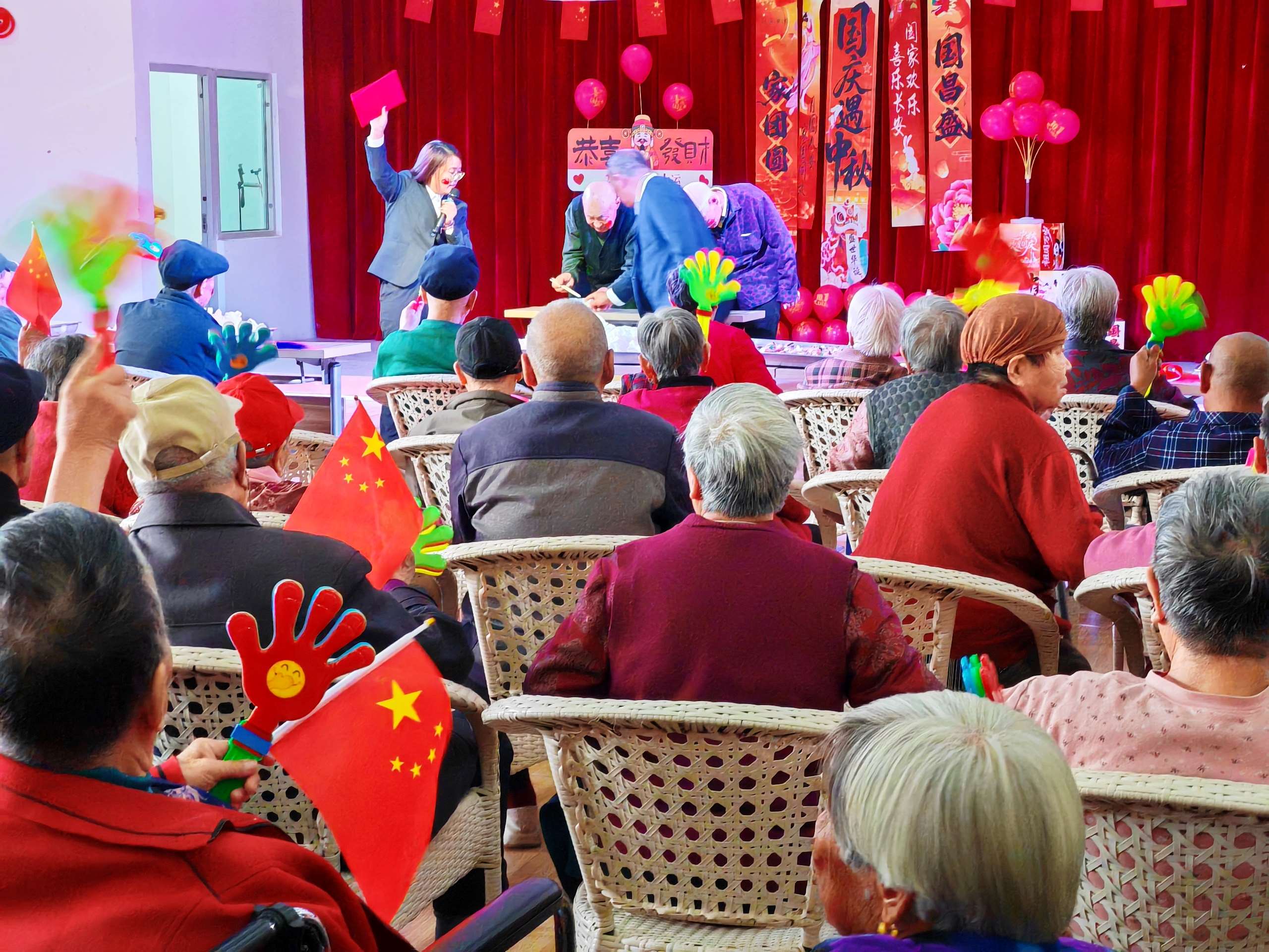 活動(dòng)現(xiàn)場(chǎng),沒(méi)有華麗的舞臺(tái),卻有最真摯的互動(dòng)。工作人員與老人們圍坐在一起,玩起了懷舊小游戲,從“搶月餅”到“猴子撈月”,爺爺奶奶們積極參與,不時(shí)傳來(lái)陣陣笑聲;有才藝的爺爺奶奶主動(dòng)登臺(tái),唱起經(jīng)典紅歌、念起傳統(tǒng)詩(shī)詞,熟悉的旋律與真摯的情感感染著在場(chǎng)每一個(gè)人。午后時(shí)光里,大家圍坐在桌前打牌聊天,聊聊家常、說(shuō)說(shuō)過(guò)往,偶爾穿插著對(duì)祖國(guó)發(fā)展的感慨,氛圍熱鬧又溫馨。