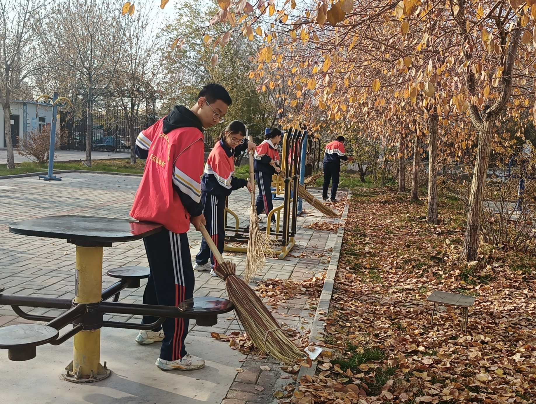 聊天結(jié)束后,師生們又拿起提前準(zhǔn)備好的掃帚、簸箕,開啟了“清掃落葉行動(dòng)”。金黃的銀杏葉、火紅的楓葉鋪滿院區(qū)小徑,孩子們兩人一組,有的彎腰掃葉,有的踮腳清理花壇角落,動(dòng)作麻利又仔細(xì)。汗水浸濕了校服衣領(lǐng),卻沒人喊累,反而互相比賽誰掃得更干凈。看到孩子們認(rèn)真的模樣,不少老人主動(dòng)搬來小板凳,還端出熱水讓他們歇一歇。“看著這些孩子,就像看到自家孫輩,心里暖烘烘的。”看著整潔的院區(qū)和孩子們的笑臉,張奶奶欣慰地說。