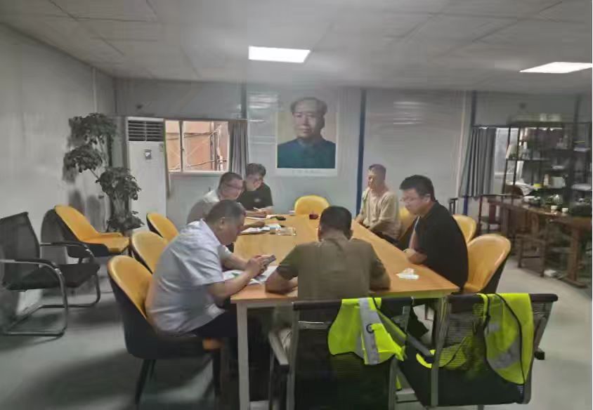 項(xiàng)目經(jīng)理王賓(右1)在金山寺站組織召開進(jìn)度專班會(huì)