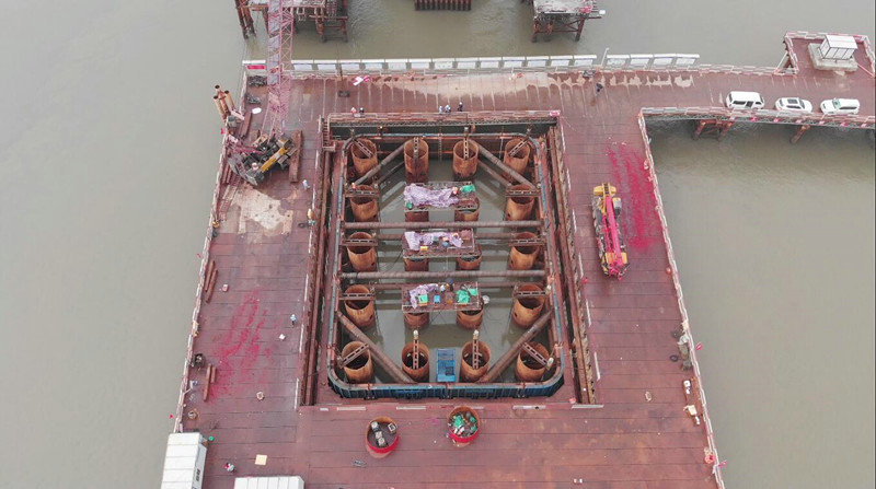 整個(gè)鋼-混組合吊箱下放準(zhǔn)備工作歷時(shí)20天,期間項(xiàng)目人員精心準(zhǔn)備,數(shù)次召開(kāi)專題研討會(huì),對(duì)吊箱下放前準(zhǔn)備工作及可能遇到的風(fēng)險(xiǎn)和難題進(jìn)行精心研討和部署。鋼-混組合吊箱下發(fā)過(guò)程中項(xiàng)目人員精細(xì)分工,嚴(yán)密監(jiān)控,保證了鋼-混組合吊箱的順利下發(fā)。