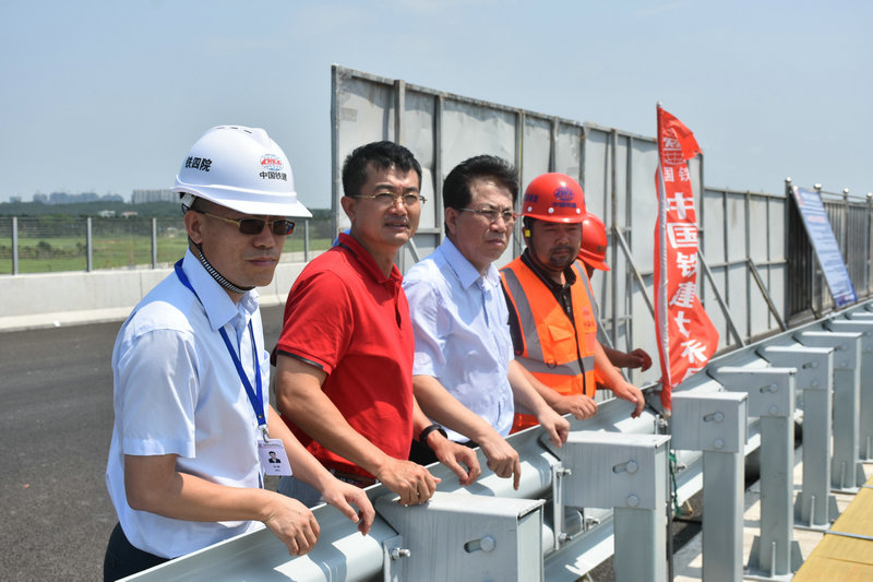 近日,海南省交通廳姚建勇副廳長到中國鐵建大橋局一公司文瓊高速路面2標(biāo)調(diào)研,海南省交建局李邦武副局長、中鐵四院代建指揮部何暉指揮長、中國鐵建大橋局文瓊高速路面2標(biāo)項目經(jīng)理王東輝陪同調(diào)研。