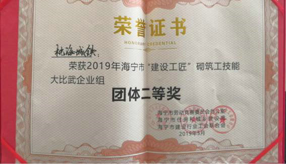 5月5日,海寧市組織開展2019年度“建設(shè)工匠”砌筑工技能比武大賽,中鐵一局建安公司杭海城際鐵路項目選派3支砌筑代表隊參賽,并奪得企業(yè)組團(tuán)體賽二等獎榮譽(yù),三支參賽隊伍均獲得企業(yè)組三等獎榮譽(yù)。
