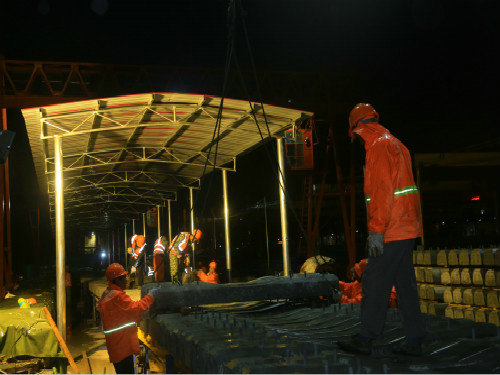 目前,項(xiàng)目部人工鋪軌工作已進(jìn)入全面大干階段,作為“軍需糧草”供應(yīng)部門的綜合隊(duì),任務(wù)十分繁重,工人們晝夜開展軌排生產(chǎn)已成為常態(tài)化。