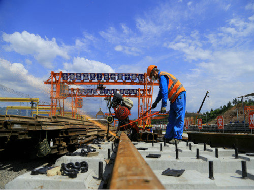 據(jù)統(tǒng)計(jì),目前項(xiàng)目部已累計(jì)完成存儲三型枕38000根,橋枕17000根,存儲500m長軌406根,特級道砟6.65萬方,“糧草”的及時(shí)充足供給為黔張常鐵路的鋪通奠定了堅(jiān)實(shí)基礎(chǔ)。
