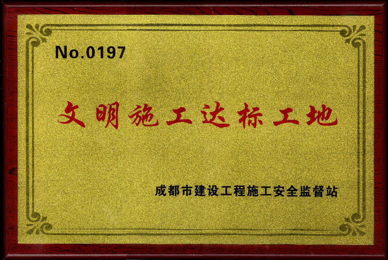 圖為成都地鐵5號(hào)線項(xiàng)目元華車輛段“文明施工達(dá)標(biāo)工地”獎(jiǎng)牌