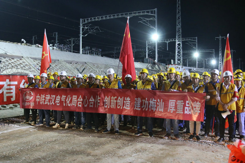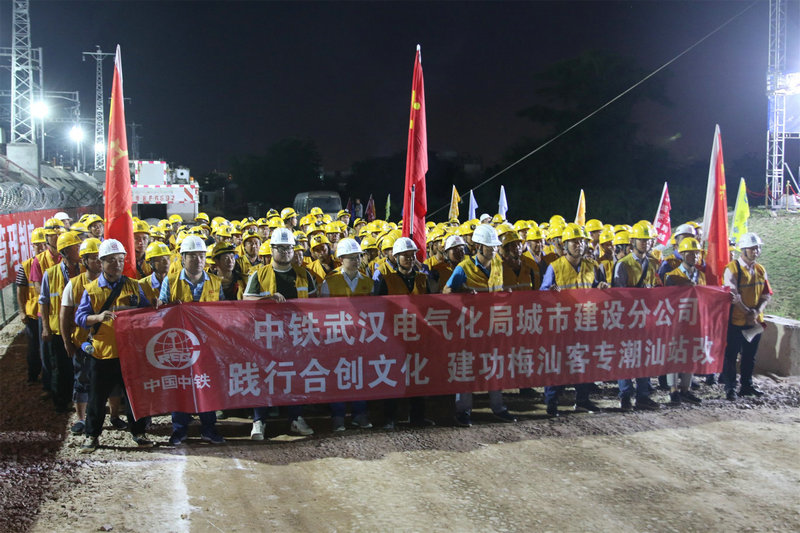 潮汕站改工程,是中鐵武漢電氣化局集團(tuán)城市建設(shè)分公司首次在粵東地區(qū)進(jìn)行的既有線站改施工,能否按期安全完成首次綜合要點(diǎn)施工任務(wù)意義重大。為確保此次任務(wù)勝利完成,集團(tuán)公司黨委副書記、工會(huì)主席、副總經(jīng)理吳國琦,集團(tuán)公司副總工程師萬金親臨現(xiàn)場,坐鎮(zhèn)指揮;分公司黨委書記何明全,黨委副書記、紀(jì)委書記、工會(huì)負(fù)責(zé)人熊衛(wèi)東,副總經(jīng)理、總工程師陳武等領(lǐng)導(dǎo)靠前指揮,項(xiàng)目黨工委書記吳軍帶領(lǐng)班子成員現(xiàn)場盯崗。“要點(diǎn)”施工前,建設(shè)者不等不靠,積極主動(dòng)與中國鐵路廣州局等有關(guān)部門協(xié)調(diào)并開展站改工作,克服了前期既有線施工手續(xù)繁瑣、施工周期長等不利因素,不斷優(yōu)化施工方案,科學(xué)組織施工,加強(qiáng)現(xiàn)場盯控,嚴(yán)把質(zhì)量關(guān),確保了站改任務(wù)的圓滿完成,得到了中國鐵路廣州局對集團(tuán)公司既有線施工能力的認(rèn)可。