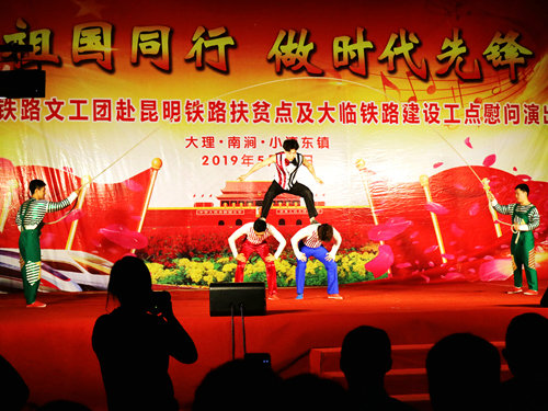 中國(guó)鐵路工程建設(shè)網(wǎng)訊(通訊員 鄭建軍)5月19日,中國(guó)鐵路文工團(tuán)以“與祖國(guó)同行·做時(shí)代先鋒”為主題的文藝晚會(huì)在中鐵十二局集團(tuán)一公司大臨三項(xiàng)目部工地精彩上演,數(shù)十名演職人員登臺(tái)獻(xiàn)藝,其中不乏多次獲得國(guó)家級(jí)演出金獎(jiǎng)的節(jié)目和國(guó)家一級(jí)演員,強(qiáng)大的演出陣容為一線職工和駐地百姓送上了相聲、歌舞、雜技、小品等精彩的文藝大餐。據(jù)悉,本次演出舉辦地小灣東鎮(zhèn)是昆明局集團(tuán)定點(diǎn)扶貧點(diǎn),文藝演出為打響扶貧攻堅(jiān)戰(zhàn)、決勝大臨鐵路建設(shè)鼓舞了士氣。