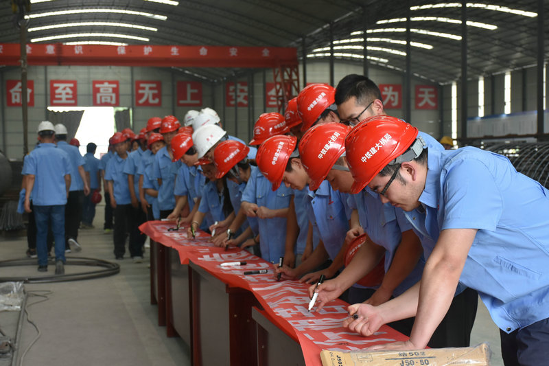5月24日,中鐵建大橋工程局一公司機(jī)關(guān)及26個(gè)項(xiàng)目部管理人員及施工隊(duì)伍代表1000多人,鄭重地在寫有“踐行艱苦奮斗從我做起,打造“品質(zhì)鐵建”我在行動(dòng)”宣傳條幅上簽名,拉開一公司開展此項(xiàng)活動(dòng)的序幕。