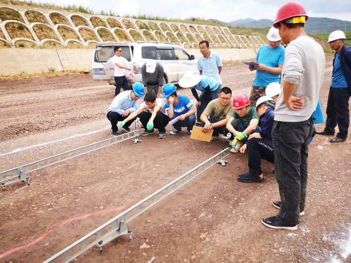 圖為首段路基交驗(yàn)彎程檢測 據(jù)悉,平天高速PTKZ1標(biāo)項(xiàng)目路基土石方269.1萬方,其中挖方183.8萬方,填方85.3萬方,自2016年2月份上場以來,路基施工填料問題,一直是路基施工的“硬傷”。原設(shè)計(jì),路基開挖料作為路基填料,但該標(biāo)段內(nèi)路基均為土質(zhì)挖方,施工所在的平?jīng)鲫P(guān)山地帶,常年雨水豐富,晴天少,雨季長,冬季日照時(shí)間短,氣溫低,路基填料含水稅率高,原設(shè)計(jì)采用攤鋪晾曬的路基施工方案不切實(shí)際,面對這種情況,相關(guān)人員多次向項(xiàng)目辦、設(shè)計(jì)院提出申請,要求變更設(shè)計(jì)方案,但方案遲遲得不到落實(shí),致使路基施工擱置一年半之久。2018年5月,在項(xiàng)目領(lǐng)導(dǎo)班子的多次建議下,建設(shè)方采用了我標(biāo)段提出的用隧道棄渣做路基填料的提議,路基填料這個(gè)“攔路虎”最終被拿下,為將耽誤的時(shí)間搶起來,項(xiàng)目領(lǐng)導(dǎo)精心組織,周密安排,路基施工隊(duì)更是加班加點(diǎn),實(shí)行歇人不歇機(jī)械車輛三班倒工作制,與天斗,與時(shí)間賽跑,最終完成了首段路基交驗(yàn),平天項(xiàng)目首段路基的順利交驗(yàn)不僅為后期路基交驗(yàn)順利開展總結(jié)了寶貴經(jīng)驗(yàn),而且有力地推動了施工進(jìn)度,同時(shí)也極大鼓舞了項(xiàng)目員工的斗志,目前,項(xiàng)目部將借“秦渭杯”勞動競賽的“東風(fēng)”,持續(xù)掀起施工熱潮、再接再厲,全力確保平天項(xiàng)目完美收官。