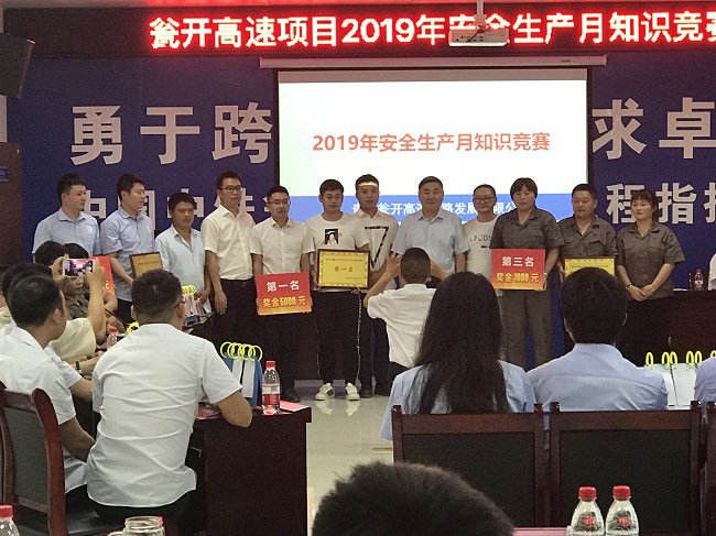 6月13日,中鐵開投甕開高速指揮部又傳喜訊,為期一天的“安全生產(chǎn)月“ “安全知識競賽”活動在甕開指揮部開展,中鐵四局甕開Ⅱ標(biāo)項目部一舉奪魁。