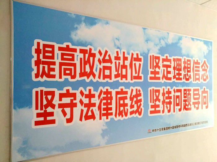 同時(shí),將悠久、厚重的企業(yè)文化在修水項(xiàng)目發(fā)揚(yáng)廣大的基礎(chǔ)上,在創(chuàng)新上作文章。以內(nèi)容新穎別致的橫幅標(biāo)語和制作精美的勵(lì)志絕句、黨風(fēng)廉政建設(shè)反腐敗警示提醒宣傳產(chǎn)品,展現(xiàn)在施工現(xiàn)場(chǎng)、駐地及道路兩側(cè)的圍欄上,聚焦了修水?dāng)?shù)十萬人的目光,樹立了央企博大、深邃的文化品牌,也潛移默化地培育了職工愛崗敬業(yè)、主動(dòng)作為、立足項(xiàng)目建功立業(yè)的熱情、激情和豪情。其次,堅(jiān)持每月支部書記給黨員干部上專題黨課,講授黨的知識(shí),解讀黨章和習(xí)近平新時(shí)代中國(guó)特色社會(huì)主義思想的精神內(nèi)涵,以及在年初“四會(huì)”上公司黨委書記所作的黨委工作報(bào)告精神實(shí)質(zhì),要求7名黨員的思想作風(fēng)、言論行動(dòng),與黨中央和公司黨委保持高度一致,加強(qiáng)黨性鍛煉,做名副其實(shí)的共產(chǎn)黨員。