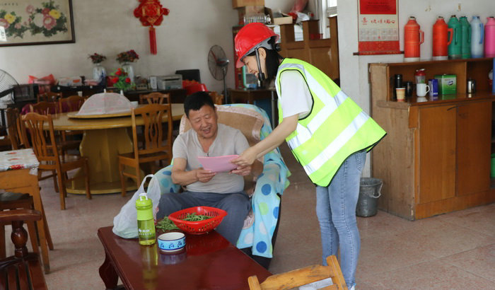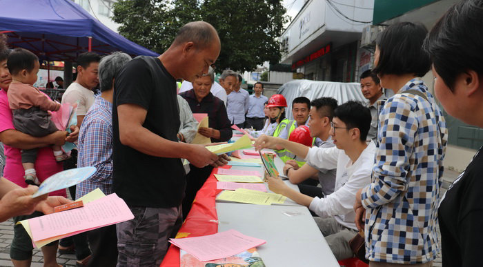 圖為項目部員工在集鎮(zhèn)發(fā)放安全宣傳傳單
