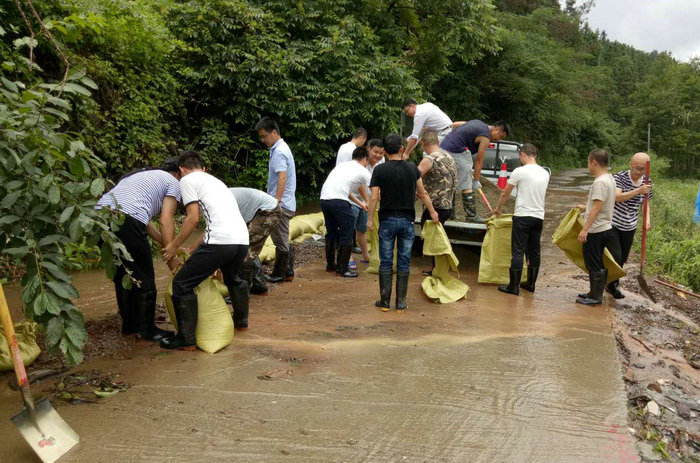 圖為員工裝沙袋堵水 夜里凌晨2點(diǎn)30分,暴雨越下越大,鋼便橋河水位急漲,洪水越來越猛,平時(shí)清澈的小河瞬間變成了一條肆無忌憚的猛獸,洪水裹著樹枝和雜物不斷吞噬著鋼便橋,雜物堵塞了橋孔。對(duì)橋產(chǎn)生了很大隱患,如果不及時(shí)疏通,有可能被洪水沖垮,直接威脅著橋頭上的村民房屋。值班搶險(xiǎn)人員迅速進(jìn)行疏通清理,并采取穩(wěn)固措施,利用繩索牽制,清除雜物,經(jīng)過一個(gè)多小時(shí)的奮戰(zhàn),隱患全部排除鋼便橋被牢牢的控制,確保了鋼便橋的安全。