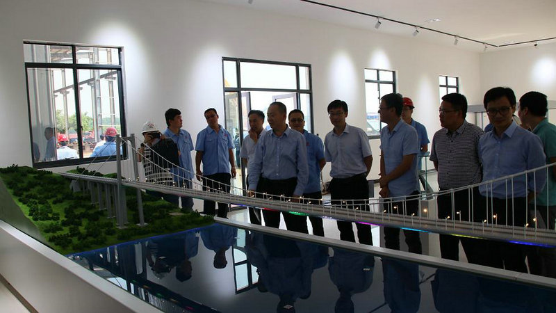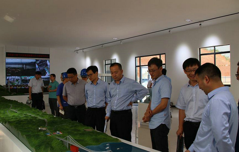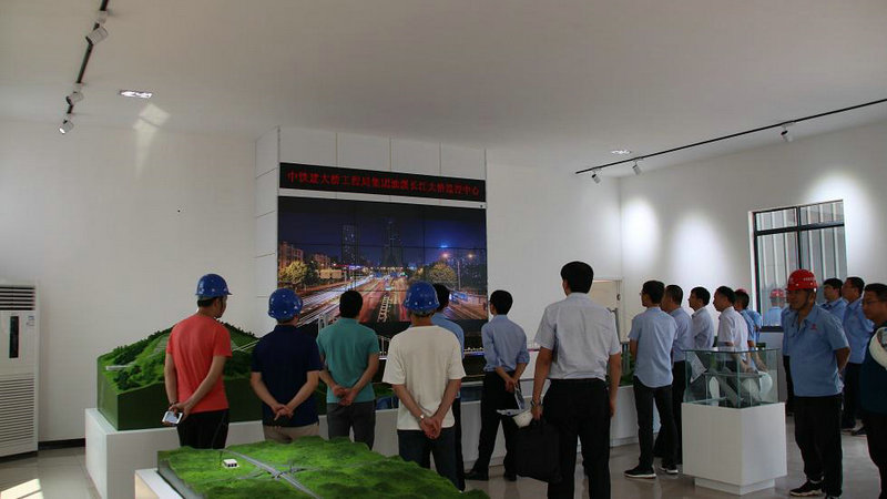 調(diào)研組首先參觀了合璧津五標(biāo)的科技創(chuàng)新工作室兼油溪長(zhǎng)江大橋安全監(jiān)控中心。在工作室內(nèi),油溪長(zhǎng)江大橋全息幻影成像和錨碇單體模型等智能化應(yīng)用展示引起了調(diào)研組的興趣。通過圖文并茂的功能展示,結(jié)合油溪長(zhǎng)江大橋和整體線路的沙盤模型,調(diào)研組對(duì)合璧津高速項(xiàng)目的整體施工布局和總體施工規(guī)劃有了直觀的認(rèn)知;監(jiān)控大屏播放的施工動(dòng)畫,詳細(xì)講解了油溪長(zhǎng)江大橋的施工重難點(diǎn)、標(biāo)準(zhǔn)化規(guī)劃建設(shè)及具體的施工方案,結(jié)合科技創(chuàng)新工作室沙盤模型等規(guī)劃設(shè)計(jì)的直觀展示,調(diào)研人員對(duì)合璧津高速公路項(xiàng)目有了清晰的了解,對(duì)安全監(jiān)控中心可以實(shí)時(shí)監(jiān)控現(xiàn)場(chǎng)施工,時(shí)時(shí)為安全施工保駕護(hù)航的作用表示了贊嘆。