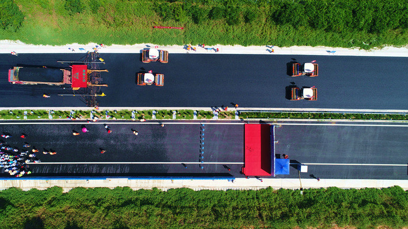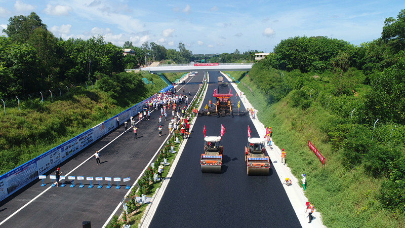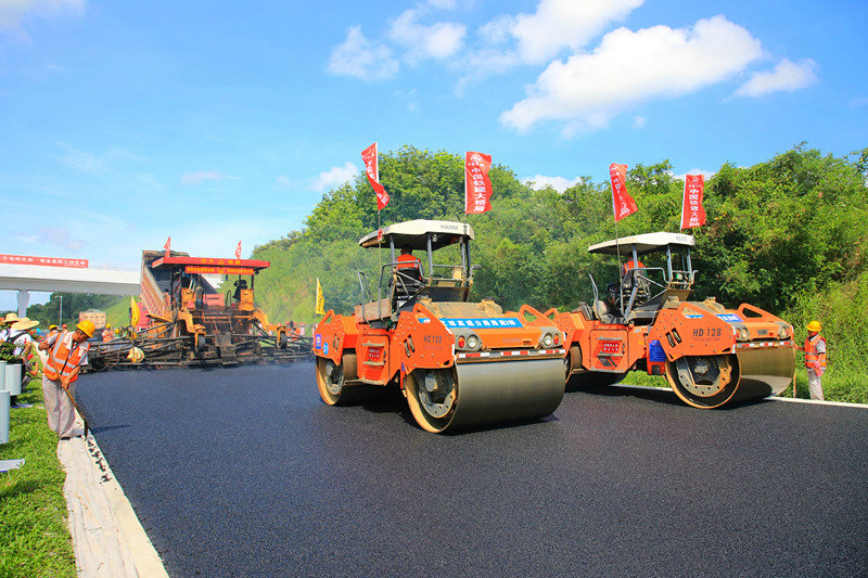 目前,中國(guó)鐵建大橋局文瓊高速路面項(xiàng)目下面層均完成96%以上,上面層完成93%。剩余工程量主要集中在互通段,將于6月全部攤鋪完成,文瓊高速也將于年內(nèi)底建成通車(chē)。