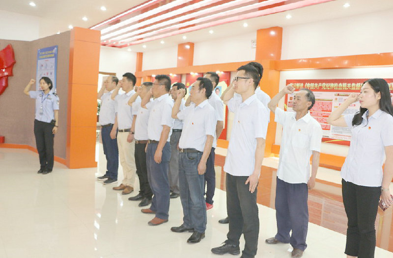 在陽(yáng)光廳,講解員從新中國(guó)歷代領(lǐng)導(dǎo)人對(duì)反腐倡廉的要求,教育大家必須加強(qiáng)廉政學(xué)習(xí),時(shí)刻不忘共產(chǎn)黨員的初心使命,以貪腐為恥,以為人民服務(wù)為榮,用制度約束自己,把權(quán)力關(guān)在制度的籠子里,堅(jiān)守道德底線,樹(shù)牢“四個(gè)意識(shí)”,堅(jiān)持“四個(gè)自信”,做到“兩個(gè)維護(hù)”,始終牢記廉政建設(shè)沒(méi)有職權(quán)大小之分,腐敗墮落更沒(méi)有崗位輕重之別。要進(jìn)一步筑牢黨員干部拒腐防變的思想道德防線,吸取教訓(xùn),時(shí)刻提高警惕,做到警鐘長(zhǎng)鳴,規(guī)矩做人,踏實(shí)做事,爭(zhēng)當(dāng)優(yōu)秀共產(chǎn)黨員。講解員還帶領(lǐng)大家重溫了入黨誓詞。