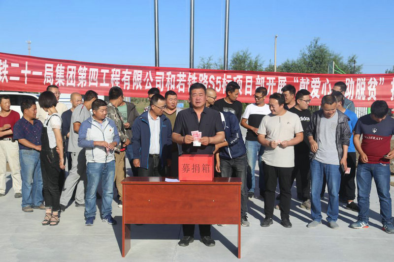6月28日,中鐵二十一局四公司和若鐵路項(xiàng)目黨支部積極響應(yīng)公司黨委號(hào)召,開(kāi)展“獻(xiàn)愛(ài)心、助脫貧”募捐活動(dòng),為河北張家口萬(wàn)全區(qū)、河北張家口尚義縣、青海果洛州的貧困地區(qū)捐獻(xiàn)一份愛(ài)心。