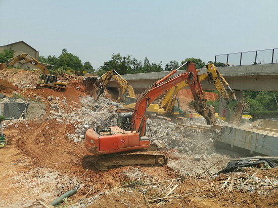 中鐵建大橋局一公司棋盤洲長江公路大橋項目本次爆破采用微差控制爆破方式,最大程度減小對距離僅十米的天橋及附近居民的影響,清渣采用多臺鑿巖機(jī)、鏟車、挖機(jī)、排土車進(jìn)行配合,現(xiàn)場作業(yè)人員80余人,確保三小時內(nèi)完成清運(yùn)工作,確保按期通車。
