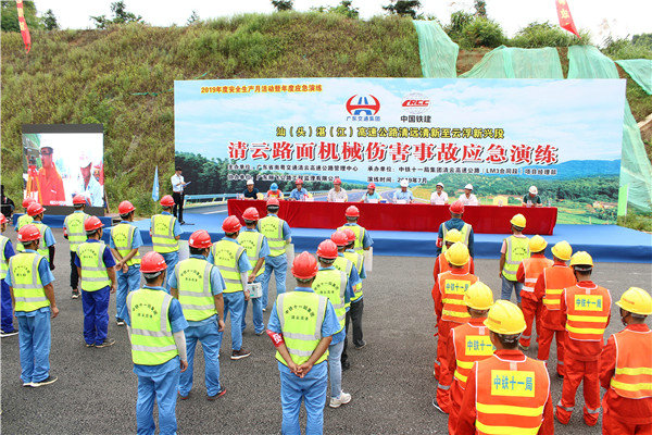 7月2日下午15:30,中鐵十一局二公司清云高速LM3標(biāo)聯(lián)合清云管理中心精心策劃,在我標(biāo)段主線K114+175-K113+900組織開展了機械傷害事故應(yīng)急演練。肇慶市高要區(qū)應(yīng)急管理局副局長陸信邦、清云管理中心黨委書記鄒偉浩及4個總監(jiān)辦、友鄰11個土建標(biāo)及4個路面標(biāo)段等相關(guān)人員參加了此次觀摩。
