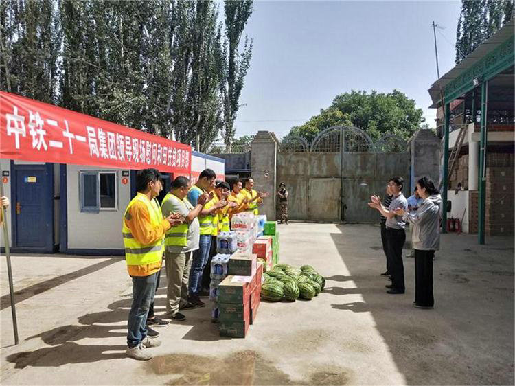 炎炎夏日 情系一線。7月7日,中鐵二十一局集團公司黨委副書記、工會主席田愛平和工會組織權(quán)益部部長余霞在一公司黨委副書記、紀委書記關(guān)崇屹陪同下到和田扶貧項目慰問檢查指導工作。