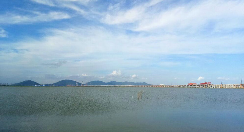 珠海洪鶴大橋HHTJ4標(biāo)段橋梁樁基均位于鶴洲南圍墾區(qū)魚塘中,魚塘水深,淤泥層厚,且時(shí)常有臺(tái)風(fēng)暴雨,項(xiàng)目工期緊,任務(wù)重,工程難度大。為此,項(xiàng)目一開始就以快速推進(jìn)施工生產(chǎn)為工作重心,以下達(dá)的節(jié)點(diǎn)工期為目標(biāo),集結(jié)各種資源,細(xì)化施組,精心謀劃,想方設(shè)法克服諸多不利因素,搶晴天,戰(zhàn)雨天,在鶴洲南圍墾區(qū)上完成了一個(gè)又一個(gè)重要的工程挑戰(zhàn)。