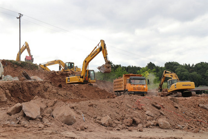 TJ-5標射洪互通路基挖方、填方施工場景(孫平安攝)