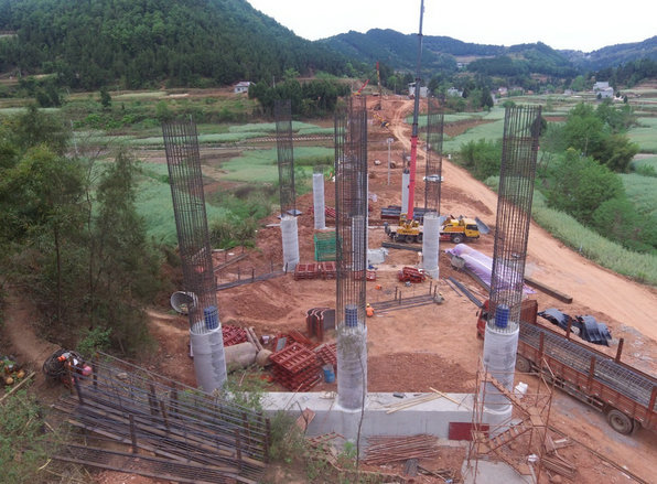 TJ-5標射洪互通橋梁樁基、墩柱施工場景(孫平安攝)