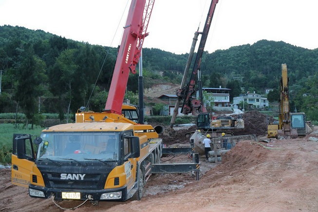 TJ-6標沱牌互通橋梁樁基工程施工場景(孫平安攝)