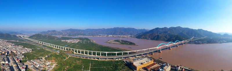 靈江特大橋全長4298.82m,共計109個墩臺,其中水中墩7個, 在水中最深的樁長為79米,集“高、大、難、新、深、急、險、重”于一體,高難度施工被央視報道稱為“在刀刃上舞蹈”。