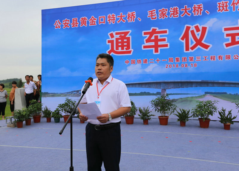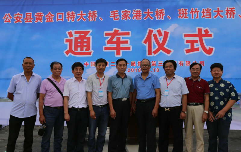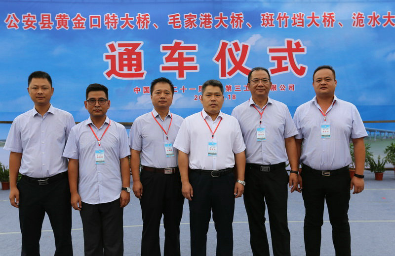 2018年5月下旬,在竣工日期臨近之際,項目部員工在經(jīng)理陳偉、副書記張國杰、總工儲定海、副經(jīng)理陳建寶的帶領(lǐng)下,加班加點(diǎn)奮力突擊兩個月,于7月28日達(dá)到驗(yàn)收標(biāo)準(zhǔn),為四座大橋按期通車奠定了實(shí)堅實(shí)的基礎(chǔ)。公安四橋項目部在荊州地區(qū)展示了良好的企業(yè)形象,受到荊州市、公安縣委、縣政府、交通局領(lǐng)導(dǎo)的高度評價。公安縣交通運(yùn)輸局局長孫家軍在致辭中,熱切希望中鐵二十一局三公司繼續(xù)參與公安縣的交通工程建設(shè),為公安人民再作新的更大的貢獻(xiàn)。