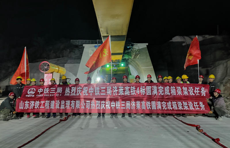 3月9日,隨著雪野2號中橋1孔箱梁緩緩的落在0號臺至1號臺上,至此,中鐵三局濟萊4標管段內(nèi)的162孔箱梁架設(shè)任務(wù)順利完成。圓滿實現(xiàn)了3月10日前完成架梁任務(wù)的施工節(jié)點目標,該節(jié)點工程的完工標志著濟萊高鐵轉(zhuǎn)入橋面系施工和無砟軌道的全面施工。